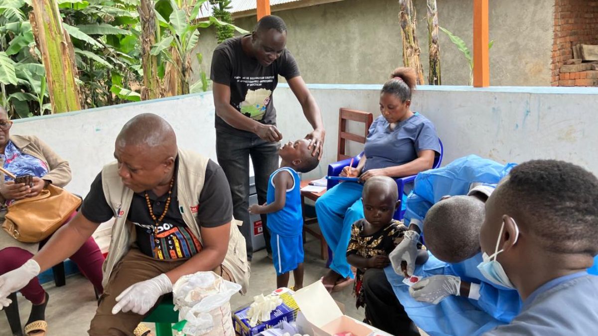 With CBM support, health workers from Uganda trained health workers in the DRC. Ugandan experts shared their technical knowledge in detecting and monitoring onchocerciasis, equipping the DRC team with the tools needed to conduct practical fieldwork and manage the disease independently in their communities. Following the training, joint teams from both countries began extensive fieldwork, visiting 19 villages along the border. They collected blood samples from children – a critical step in assessing whether the disease was still present in the region.